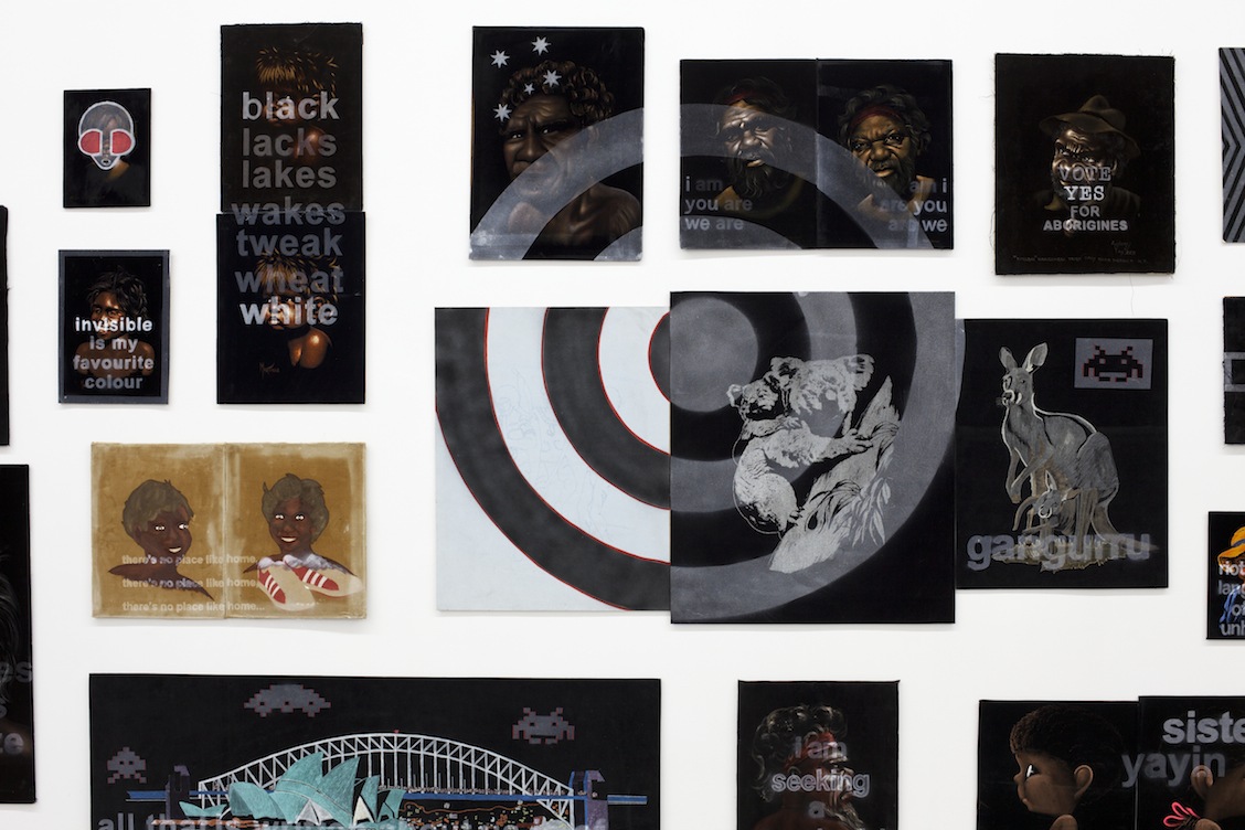 Rearranging Our History 2002-2011installation of ninety-seven reworked velvet paintingsdimensions variable, approximately 200 x 1150 cm