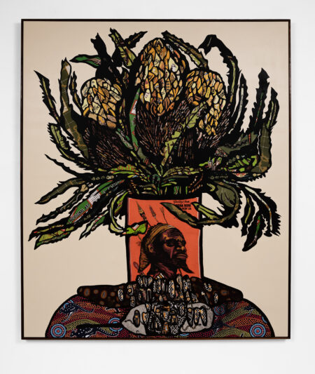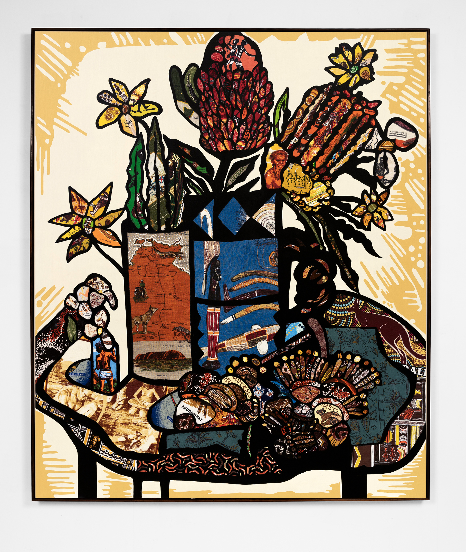 Reclamation (Still Life), 2025 acrylic and vintage appropriated fabric on canvas 185.5 x 155cm